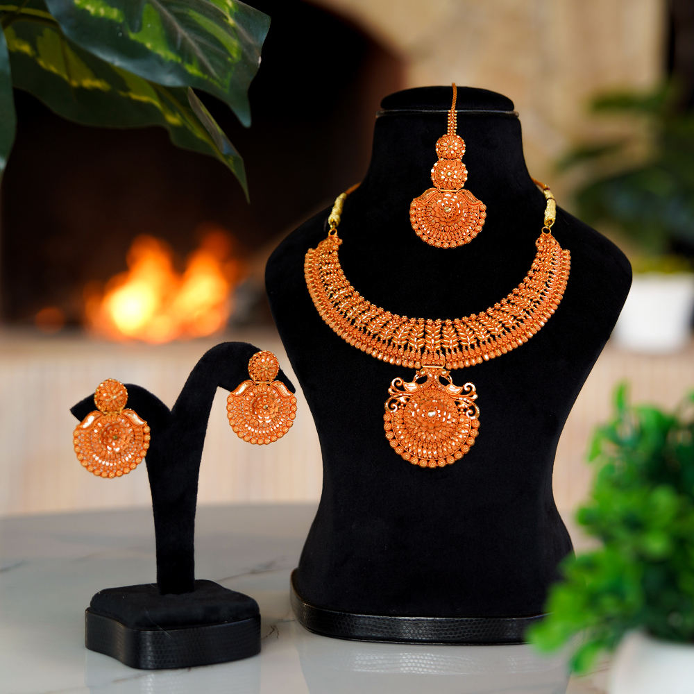 A statement necklace crafted in premium finish with intricate detailing and timeless elegance. Perfect for weddings, festive looks, and special occasions—designed to shine with every outfit.
